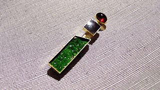 ansteckschmuck, gold 750, malachit, hematit, granat